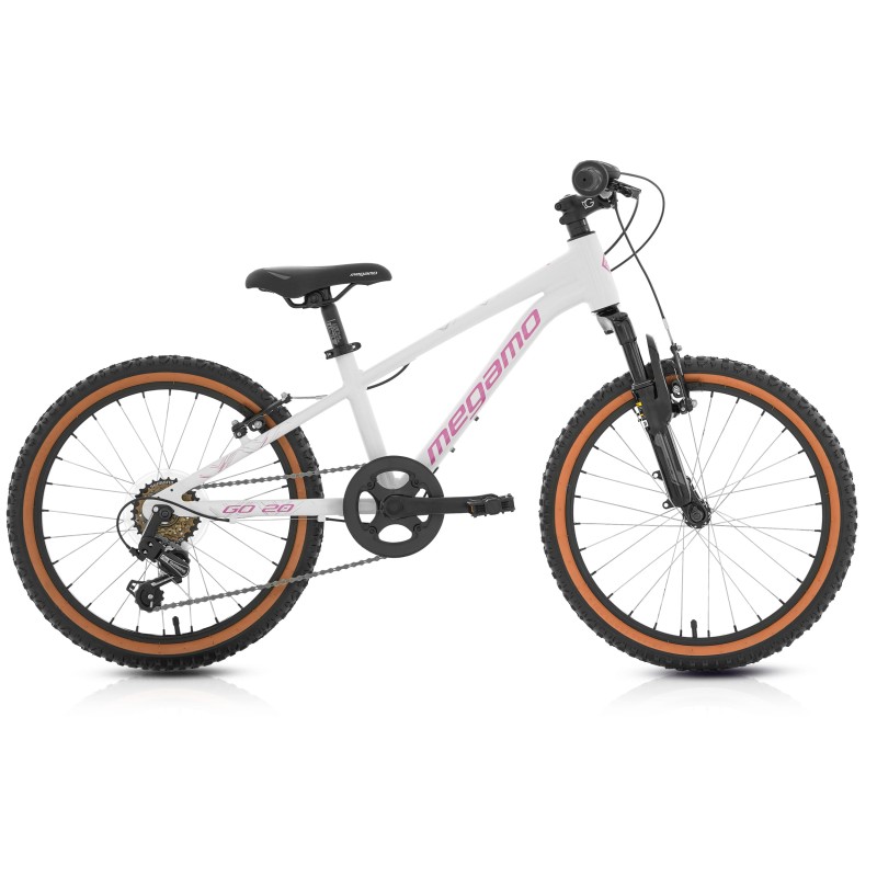Bicicleta de 20" pulgadas de aluminio con suspensión delantera, disponible en color White y Orange.