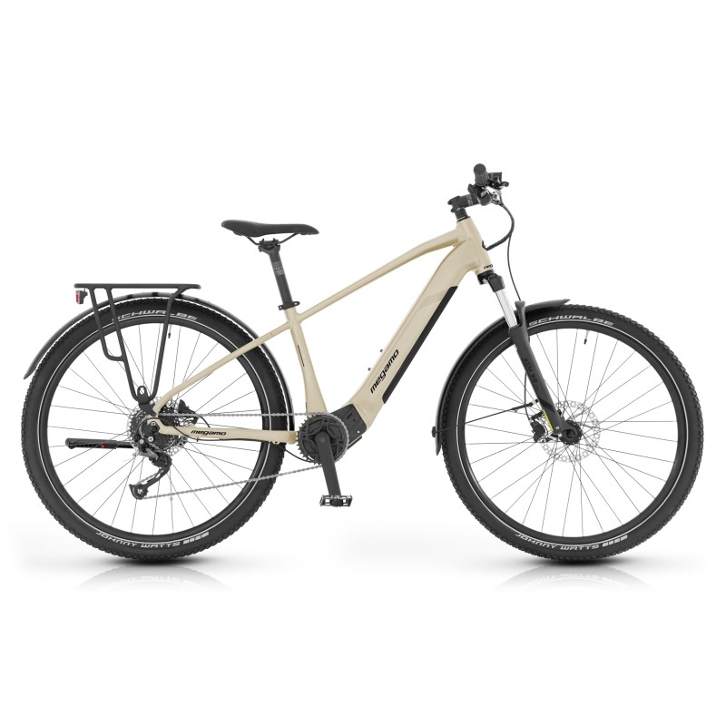 Bicicleta eléctrica de montaña Megamo con cuadro de aluminio y motor central.