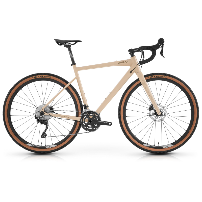 Bicicleta gravel Megamo con cuadro de aluminio y horquilla de carbono, equipada con el grupo Sram Apex 1x11v y frenos de disco hidráulicos Sram Apex.