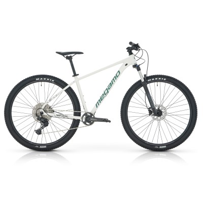Bicicleta de montaña Megamo Dx3 con cuadro en aluminio y frenos de disco mecánico, disponible en tamaño de rueda de 27,5" y 29" y en colores Red y Beige.